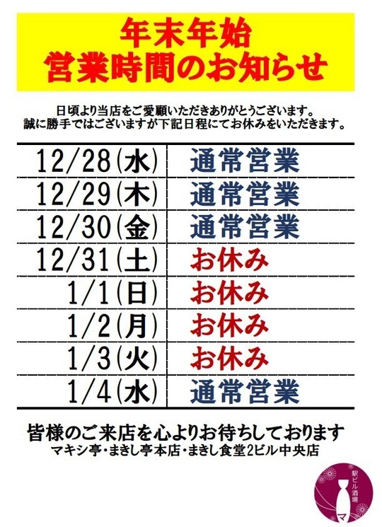 ※年始は1月4日(火)より営業!